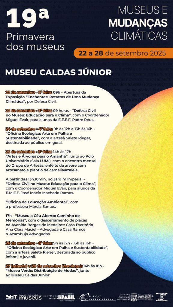 De 22 a 28 de setembro, o Museu Caldas Júnior participa da 19ª edição da Primavera dos Museus, com o tema nacional “Museus e Mudanças Climáticas”.
