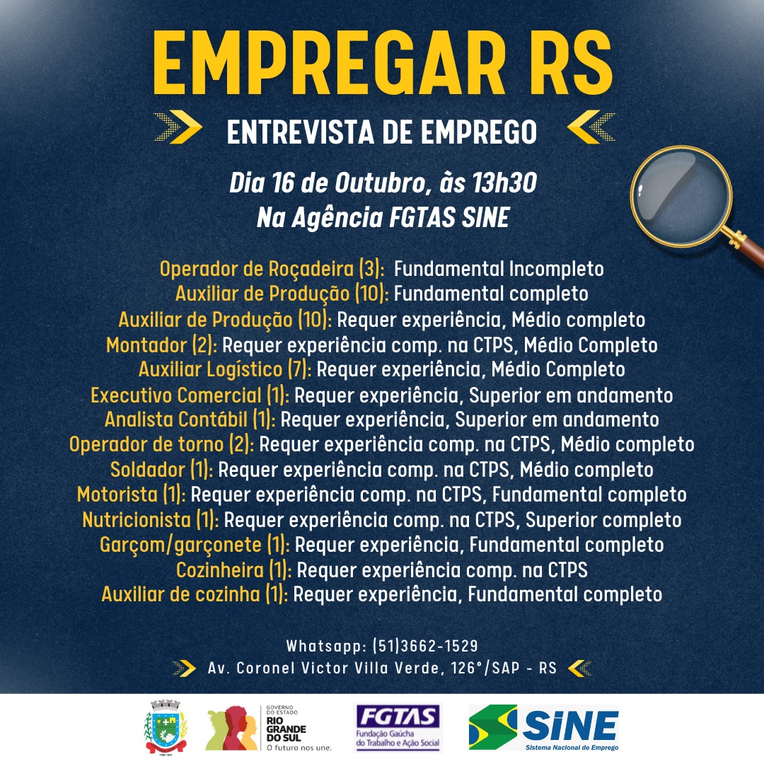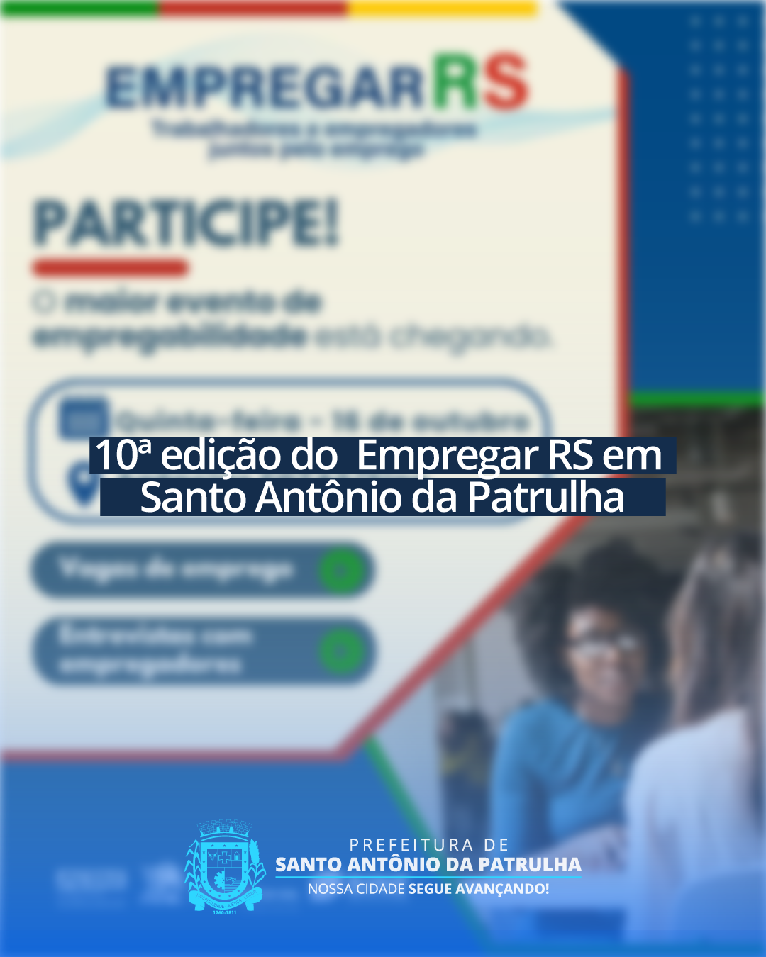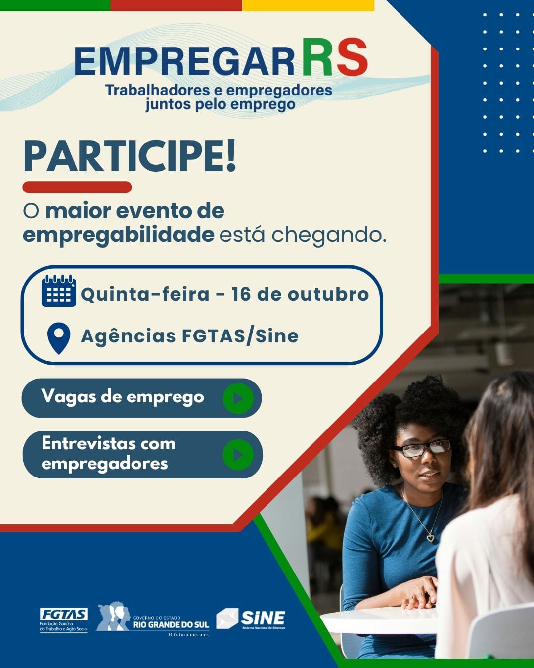 Na quinta (16), a Fundação Gaúcha do Trabalho e Ação Social (FGTAS), por meio do SINE Santo Antônio da Patrulha, realiza a 10ª edição do Empregar RS, o maior evento de empregabilidade do Estado.