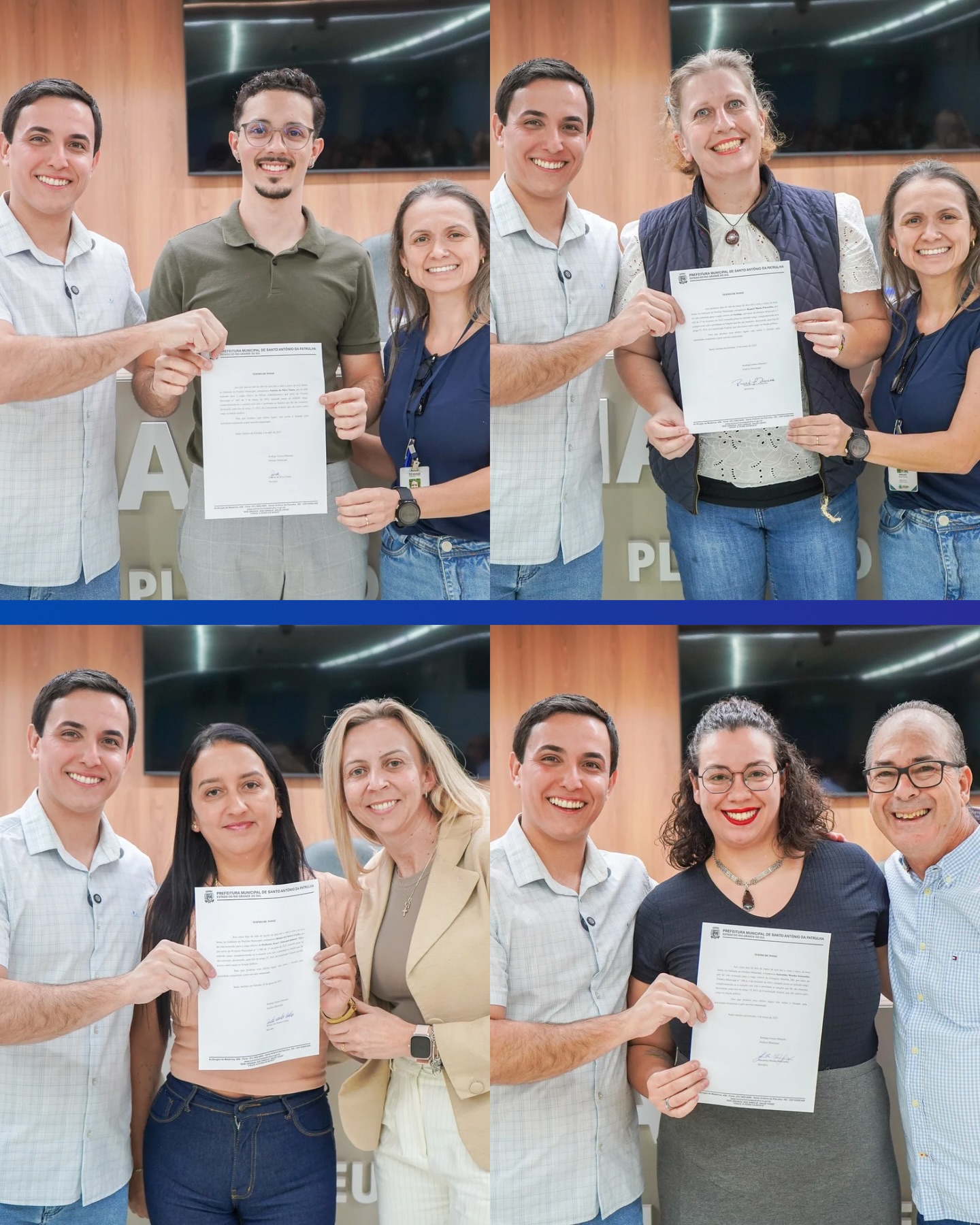 Em cerimônia realizada na manhã desta quarta, 8, foram empossados 77 novos servidores municipais. No ato, que aconteceu na Câmara de Vereadores, foi dada posse a servidores aprovados em concurso que assumiram seus cargos com data de admissão entre março e novembro de 2025.