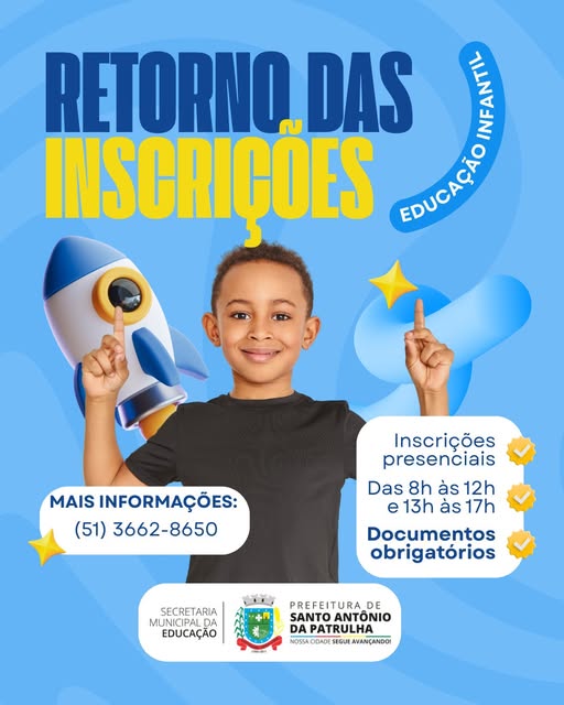 Informamos que estão reabertas as inscrições para a Educação Infantil.