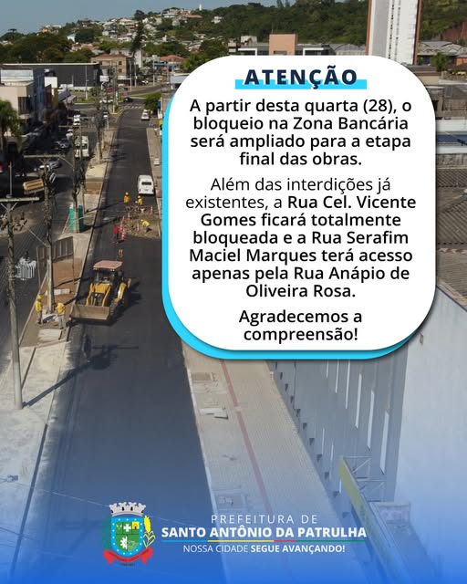 A partir desta quarta-feira (28), o bloqueio na Zona Bancária será ampliado. A área ficará ainda mais restrita e totalmente interditada para a etapa final das obras.