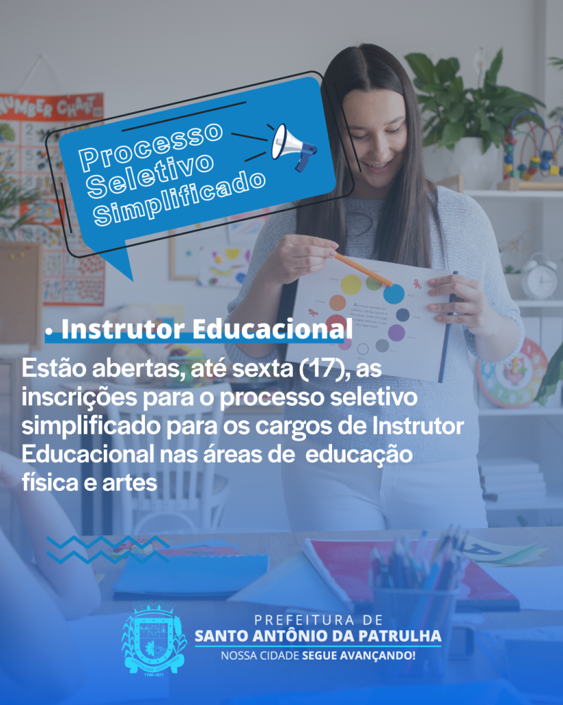 Estão abertas, até esta sexta (17), as inscrições para o processo seletivo simplificado destinado aos cargos de instrutor educacional nas áreas de Educação Física e Artes/Artesanato. Requisitos para Educação Física: Licenciatura em Educação Física (Ensino Superior) e registro no CREF. Requisitos para Artes/Artesanato: Ensino médio completo e certificado de formação técnica na área de artesanato, […]