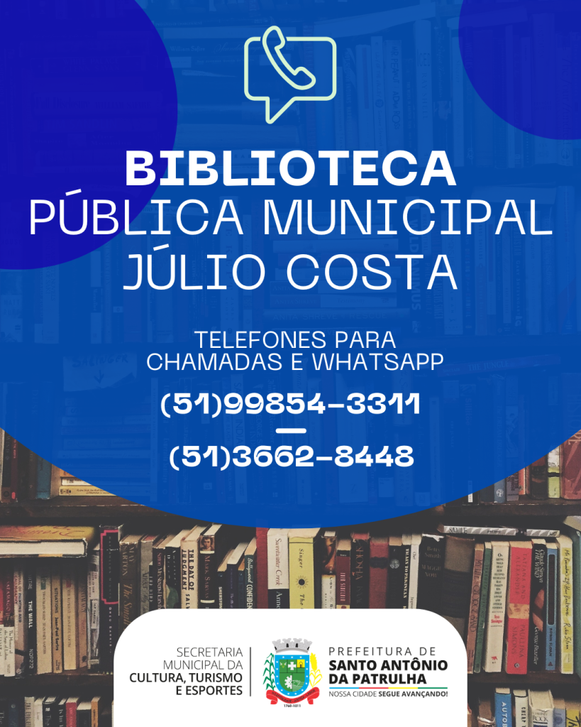 A Biblioteca Pública Municipal Júlio Costa está à disposição da comunidade! (51) 3662-8448 | (51) 9 9854-3311