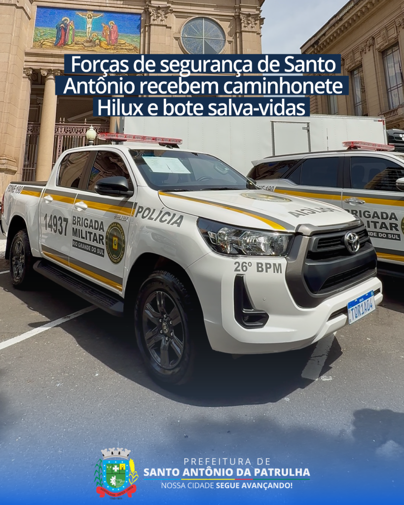 Em cerimônia realizada pelo Governo do Estado na última quinta (18), Santo Antônio da Patrulha foi contemplado com uma caminhonete Toyota Hilux, destinada à Brigada Militar, e um bote salva-vidas, que será utilizado pelo Corpo de Bombeiros e pela Defesa Civil. A entrega ocorreu em frente ao Palácio Piratini, em Porto Alegre, com a presença […]