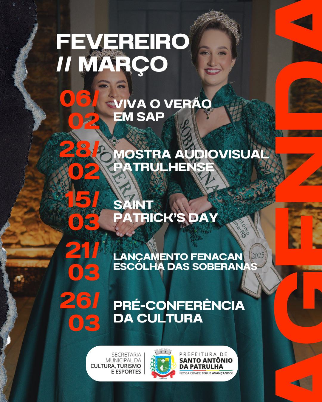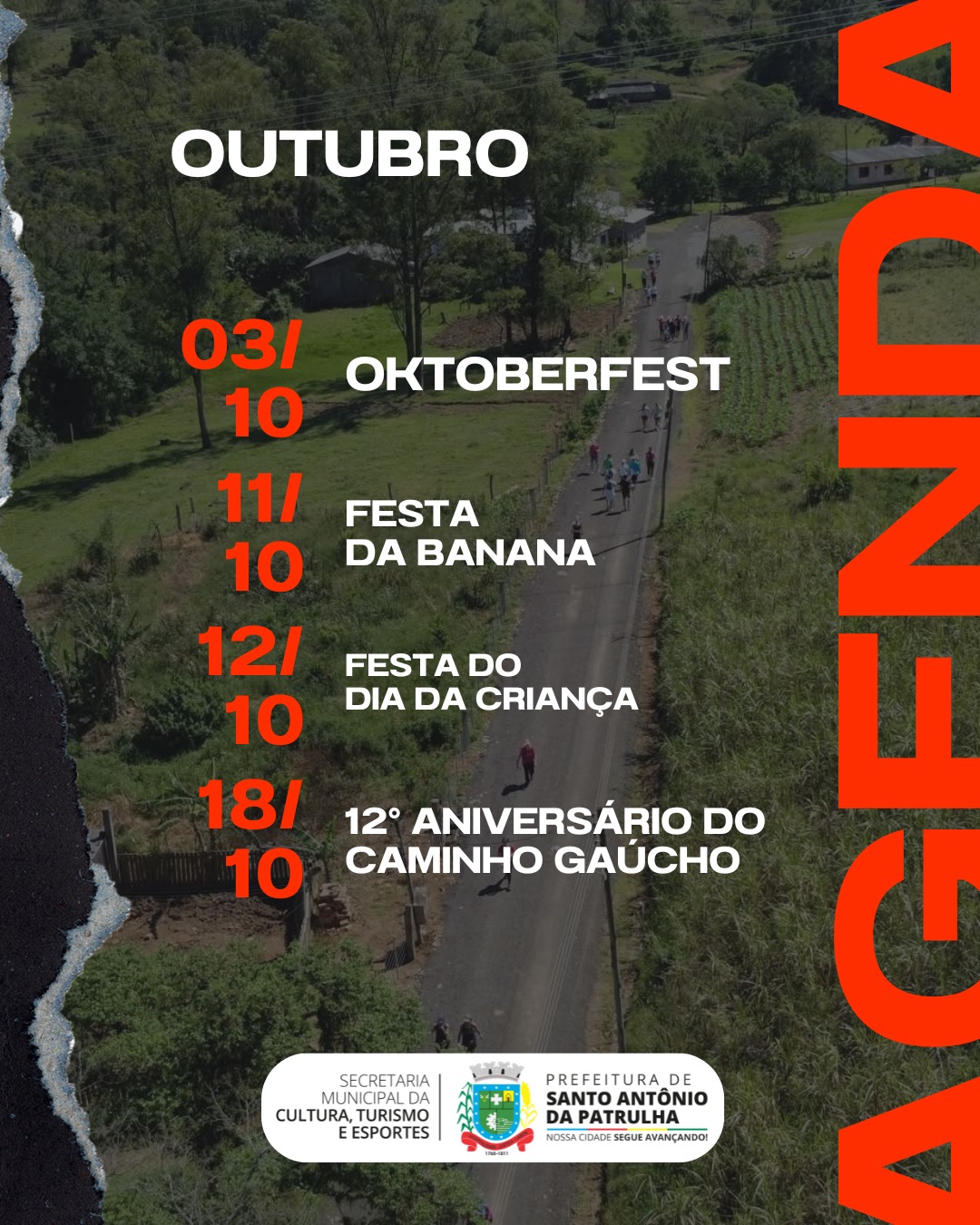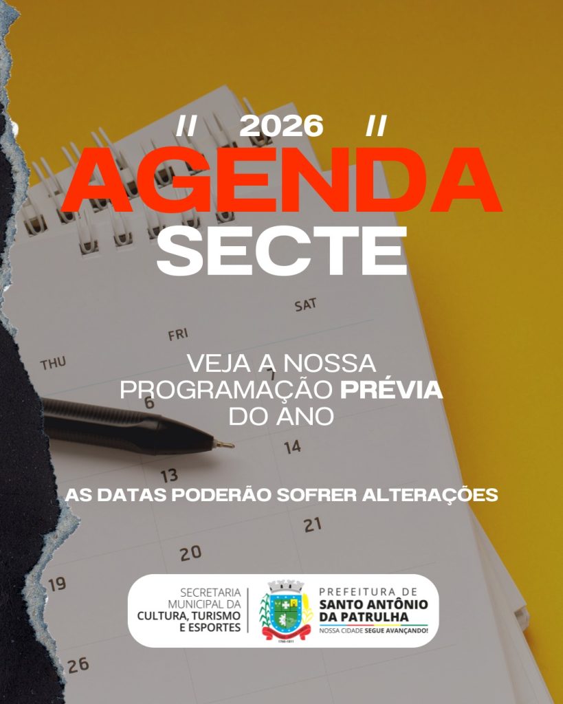 A Prefeitura de Santo Antônio da Patrulha, por meio da Secretaria da Cultura, Turismo e Esportes, apresenta o Calendário de Eventos 2026!