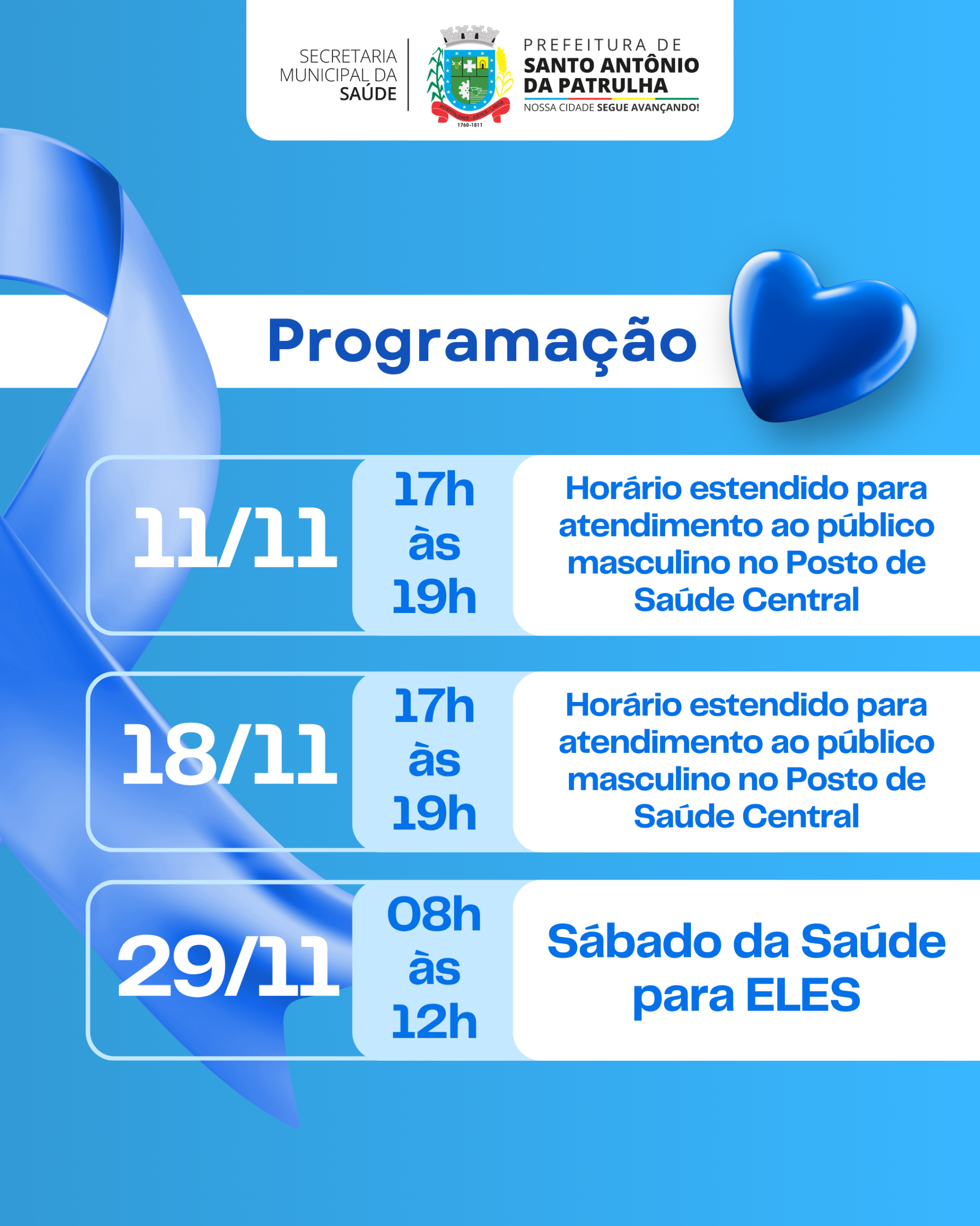 Neste mês dedicado à saúde do homem, o Posto de Saúde Central estará com horários e atendimentos especiais voltados ao público masculino.