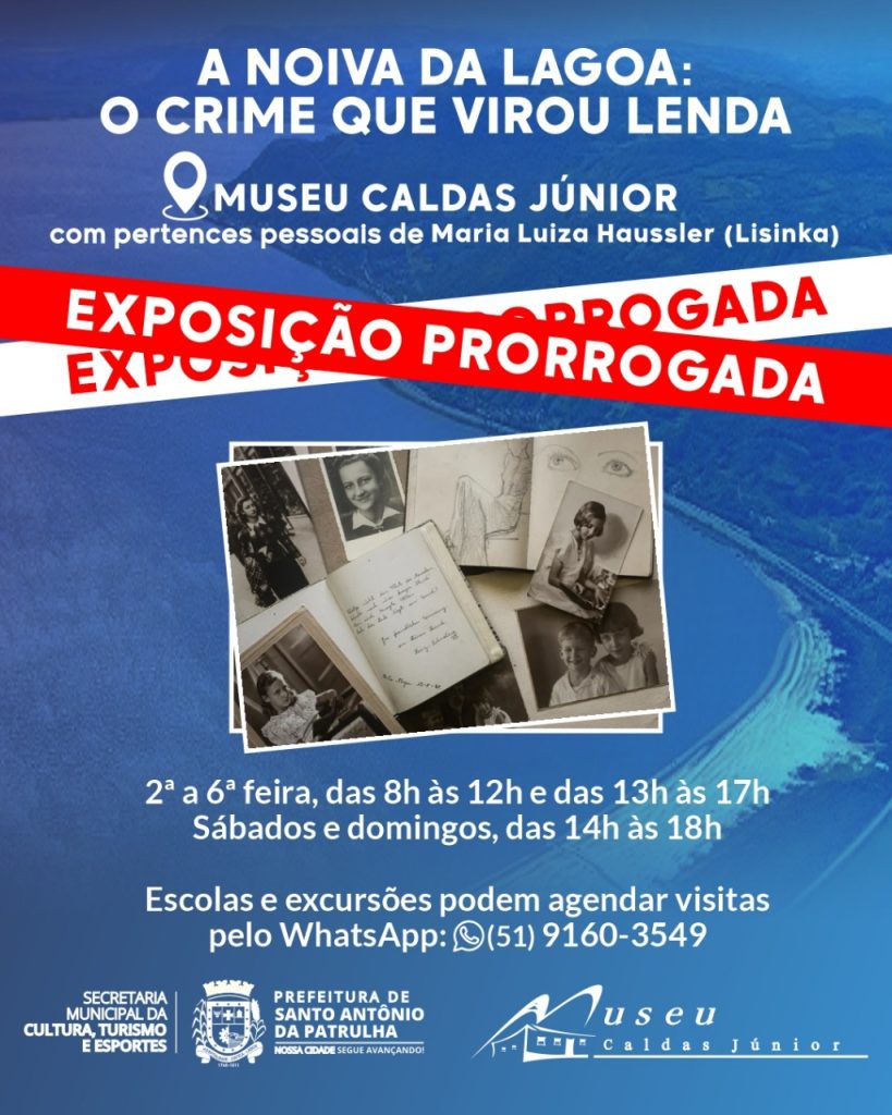 Devido ao grande sucesso de público, com 583 visitantes em agosto, a exposição “A Noiva da Lagoa: o crime que virou lenda” será prorrogada no Museu Caldas Júnior.