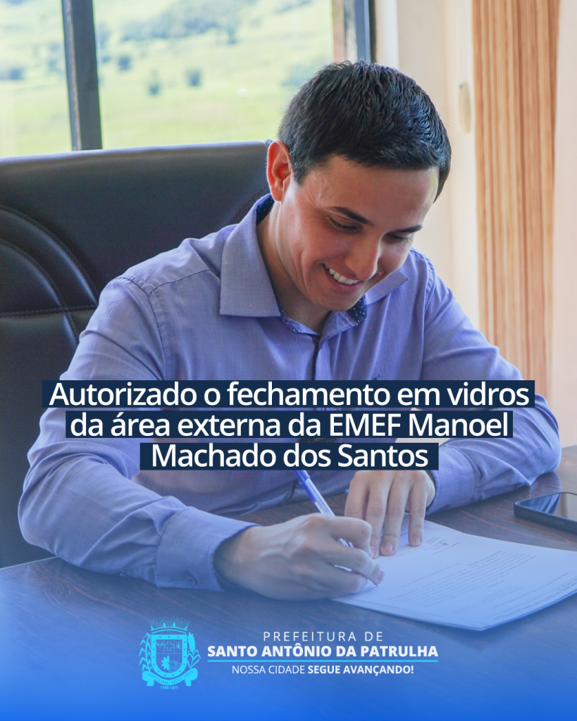 O prefeito Rodrigo Massulo assinou, na manhã desta sexta (26), ordem de serviço autorizando o início das obras de fechamento em vidros da área externa da Escola Municipal de Ensino Fundamental Manoel Machado dos Santos, localizada em Arroio da Madeira
