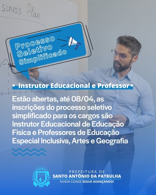 📣 Estão abertas as inscrições para o processo seletivo simplificado para formação de cadastro reserva para cargos de Instrutor Educacional e Professor, áreas 1 e 2.