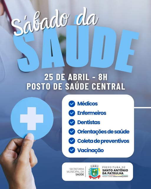 Como já é tradição no último sábado de cada mês, o Posto de Saúde Central vai estar com as portas abertas para te receber, a partir das 8h.