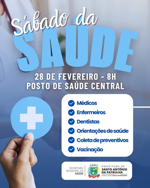 Como já é tradição no último sábado de cada mês, neste dia 28 o Posto de Saúde Central vai estar com as portas abertas para te receber, a partir das 8h.