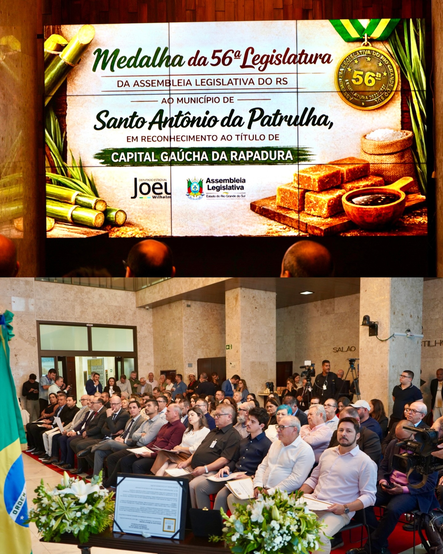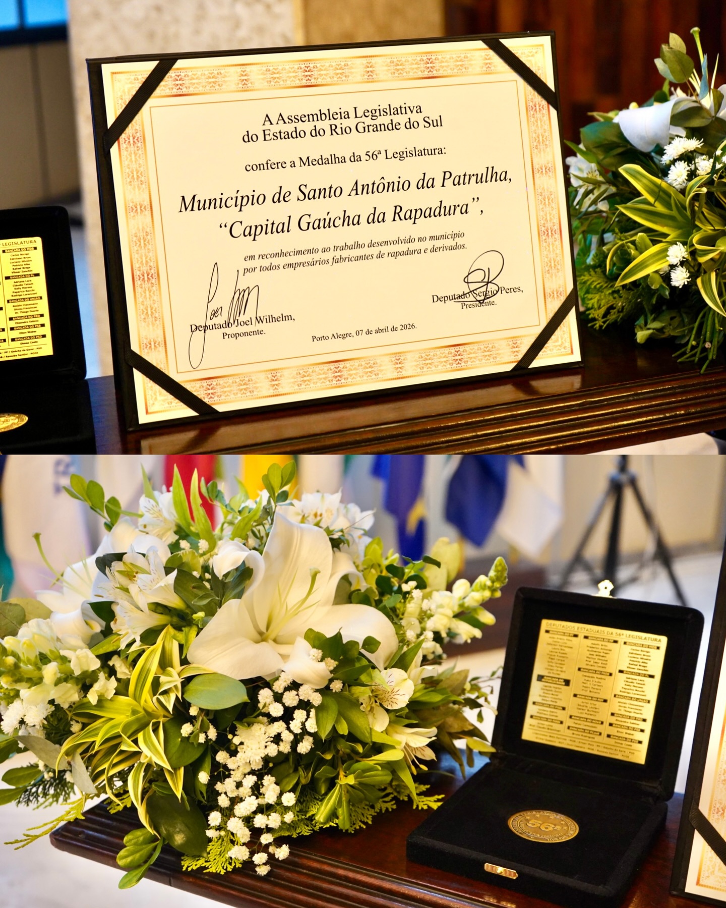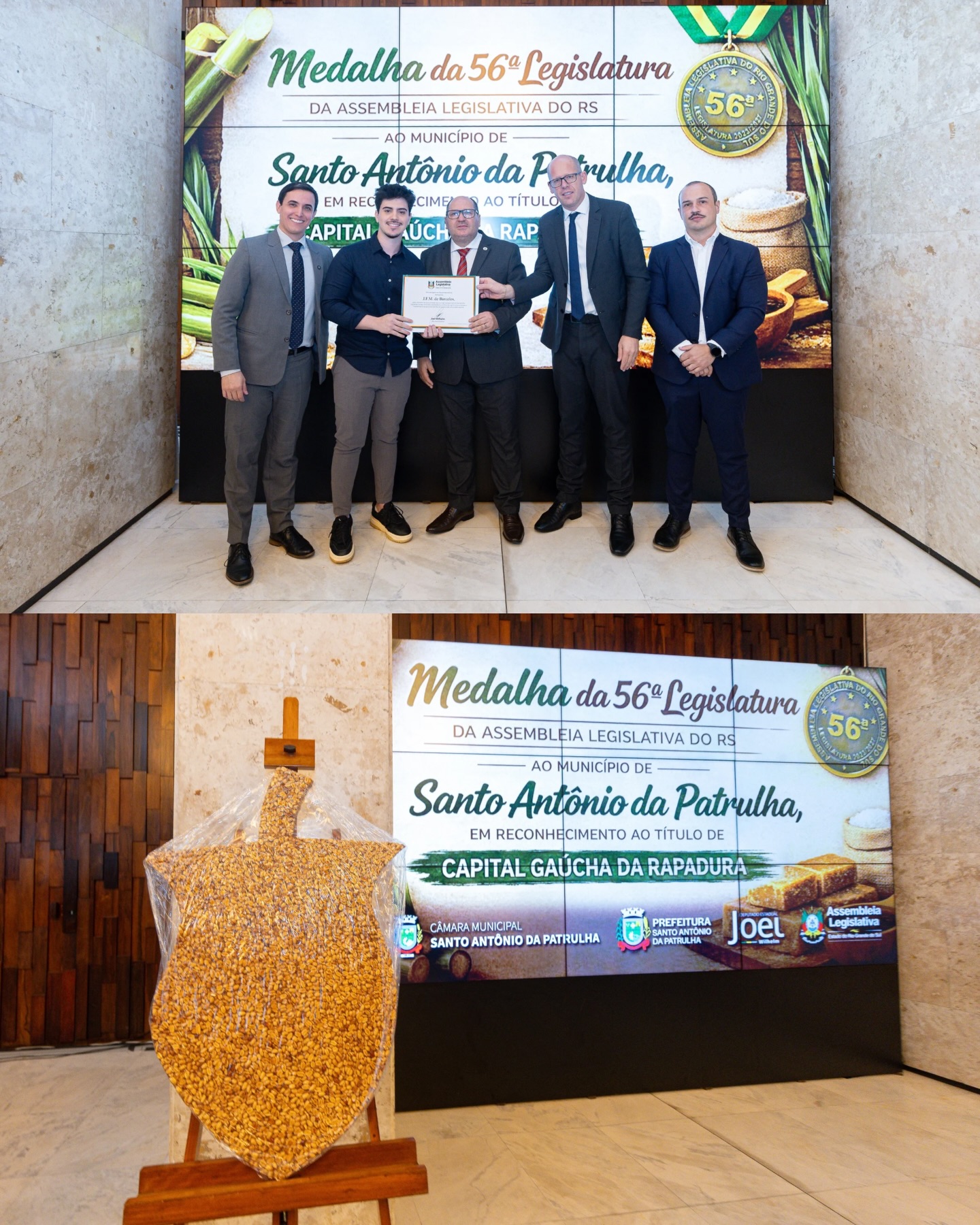 Na ocasião, foi entregue ao prefeito Rodrigo Massulo a Medalha da 56ª Legislatura e um certificado, concedendo ao município o título. Também foram entregues certificados a 11 empresas patrulhenses produtoras de rapaduras e doces. A homenagem, proposta pelo deputado Joel Willhelm, destaca a relevância histórica, cultural e econômica da produção de rapadura em Santo Antônio da Patrulha.