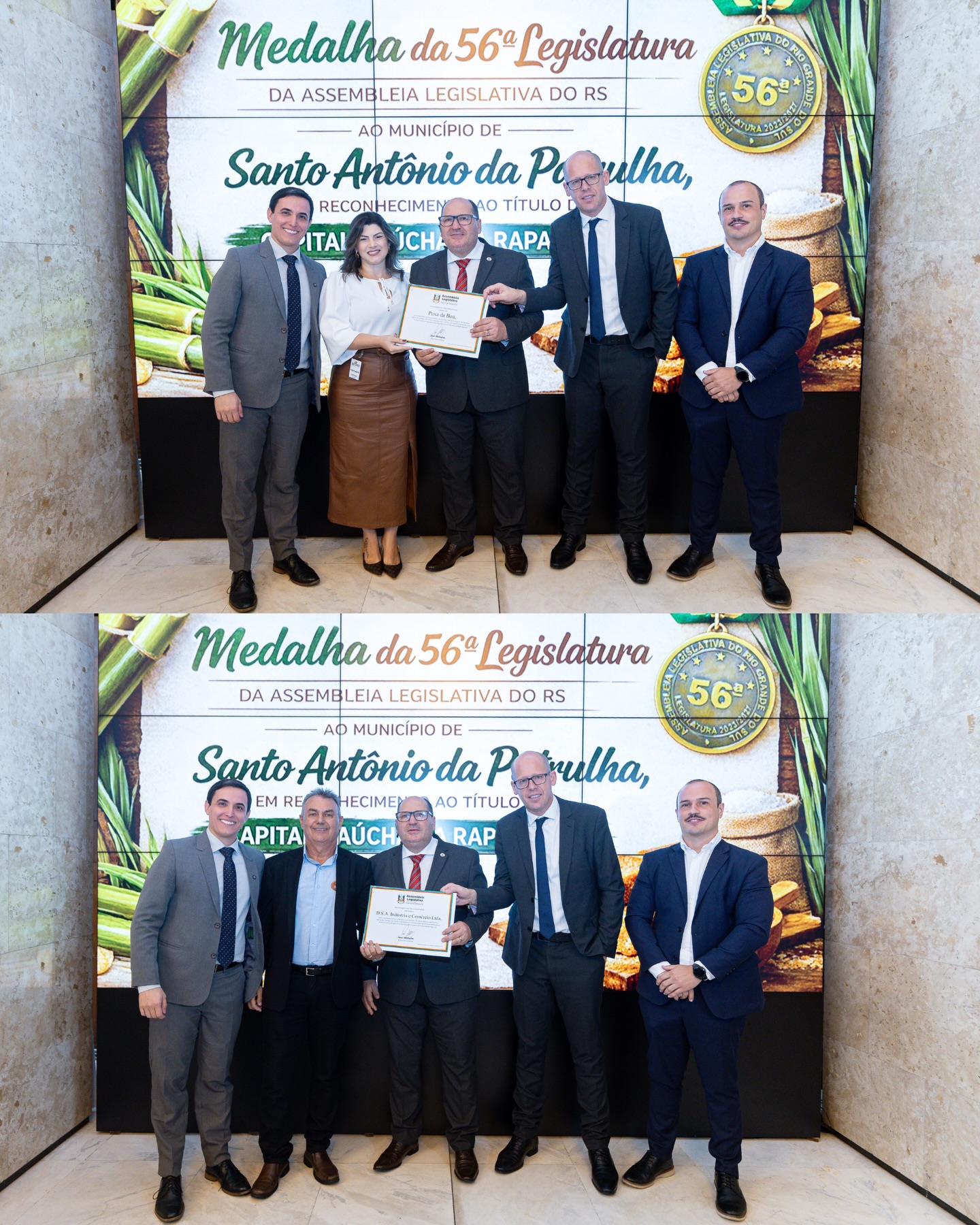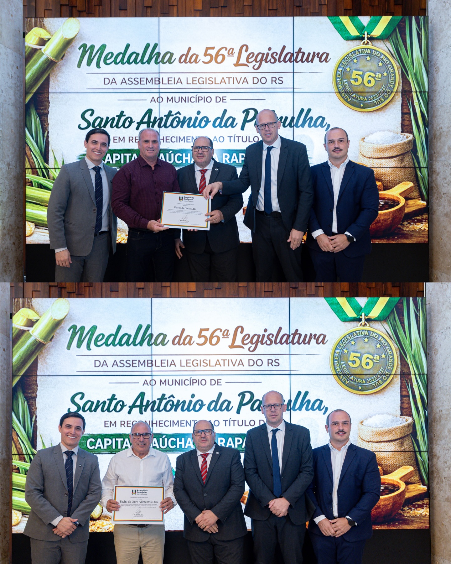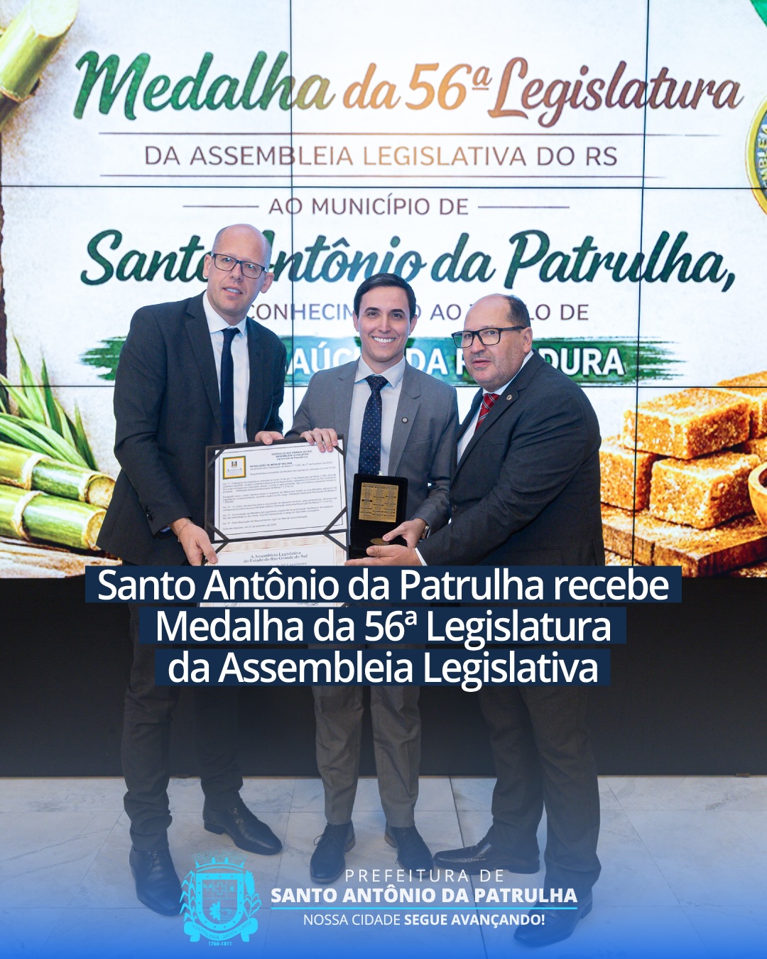 Na ocasião, foi entregue ao prefeito Rodrigo Massulo a Medalha da 56ª Legislatura e um certificado, concedendo ao município o título. Também foram entregues certificados a 11 empresas patrulhenses produtoras de rapaduras e doces. A homenagem, proposta pelo deputado Joel Willhelm, destaca a relevância histórica, cultural e econômica da produção de rapadura em Santo Antônio da Patrulha.
