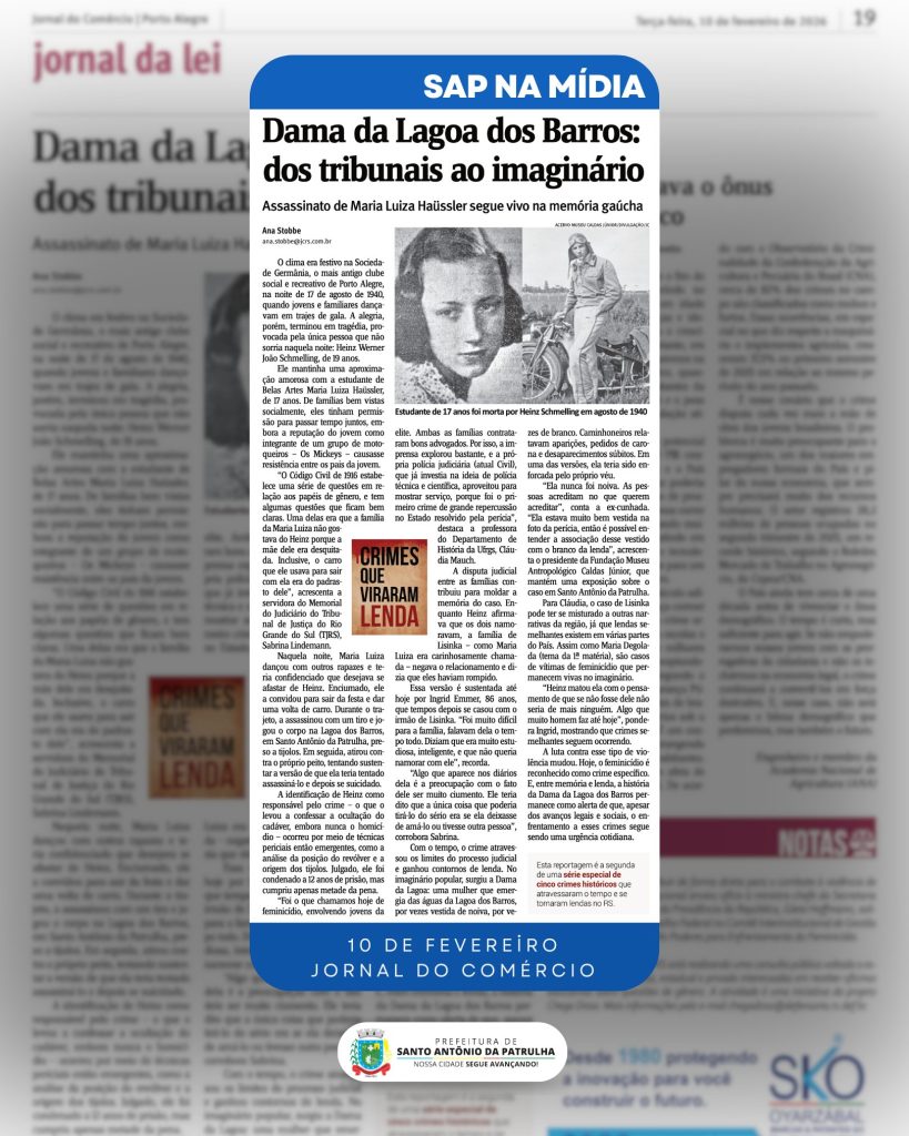 Na última terça (10), o Jornal do Comércio publicou uma matéria especial sobre o emblemático caso da Noiva da Lagoa, episódio que marcou a história do nosso município e atravessa gerações no imaginário popular.
