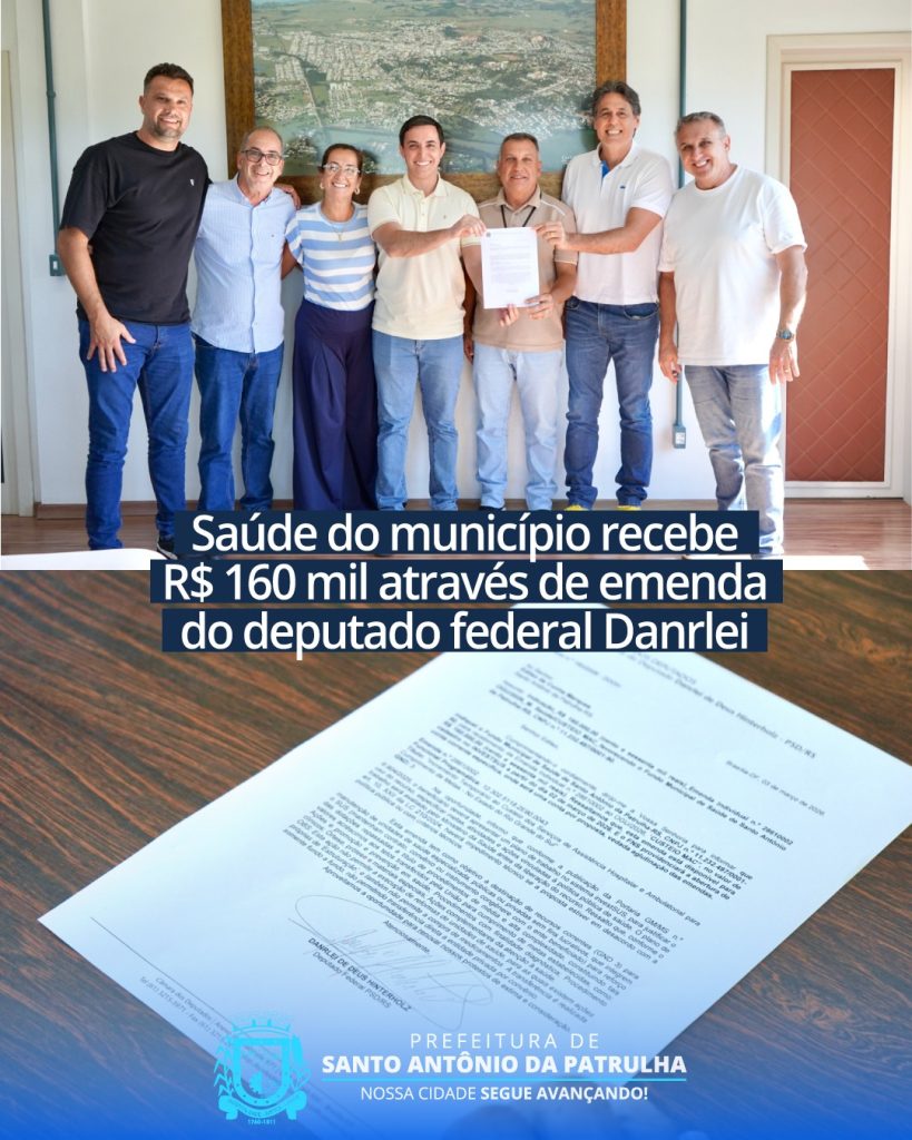 O recurso será destinado à Secretaria Municipal da Saúde (SEMSA). “Quero agradecer ao deputado Danrlei pela emenda, que certamente será fundamental para que possamos qualificar ainda mais o nosso atendimento em saúde em Santo Antônio da Patrulha. Também deixo um agradecimento ao nosso diretor de Esportes, Ediso Marques, que articulou junto ao gabinete do parlamentar para que pudéssemos receber esses recursos”, destacou Massulo.