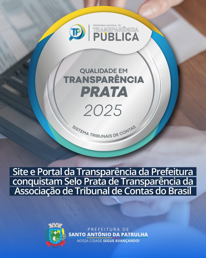 A Prefeitura de Santo Antônio da Patrulha conquistou o Selo Prata de Transparência no 4º Ciclo do Programa Nacional de Transparência Pública (PNTP 2025), iniciativa coordenada pela Associação dos Membros dos Tribunais de Contas do Brasil (ATRICON).