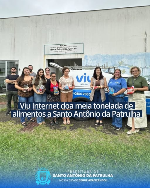 A Viu Internet realizou, nesta quinta (19), a doação de meia tonelada de alimentos para o CRAS Bom Princípio, em Santo Antônio da Patrulha.